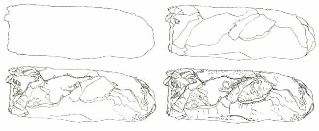 You sink deeper and deeper as you see more and more. You draw the edges and then the textures, the shadows, the textures and shadows within textures and shadows. The orange, the tree, the body you are drawing is just a landscape your eyes traverse. Your line takes you through adventures and surprises, over hill and down valley, into light and through shade. And eventually your journey brings you home again and you feel your pen thud back against the dock, the door step, and the world slowly cranks back up again like the merry-go-round it is and you come back to all your senses, sharpened, refreshed, renewed.