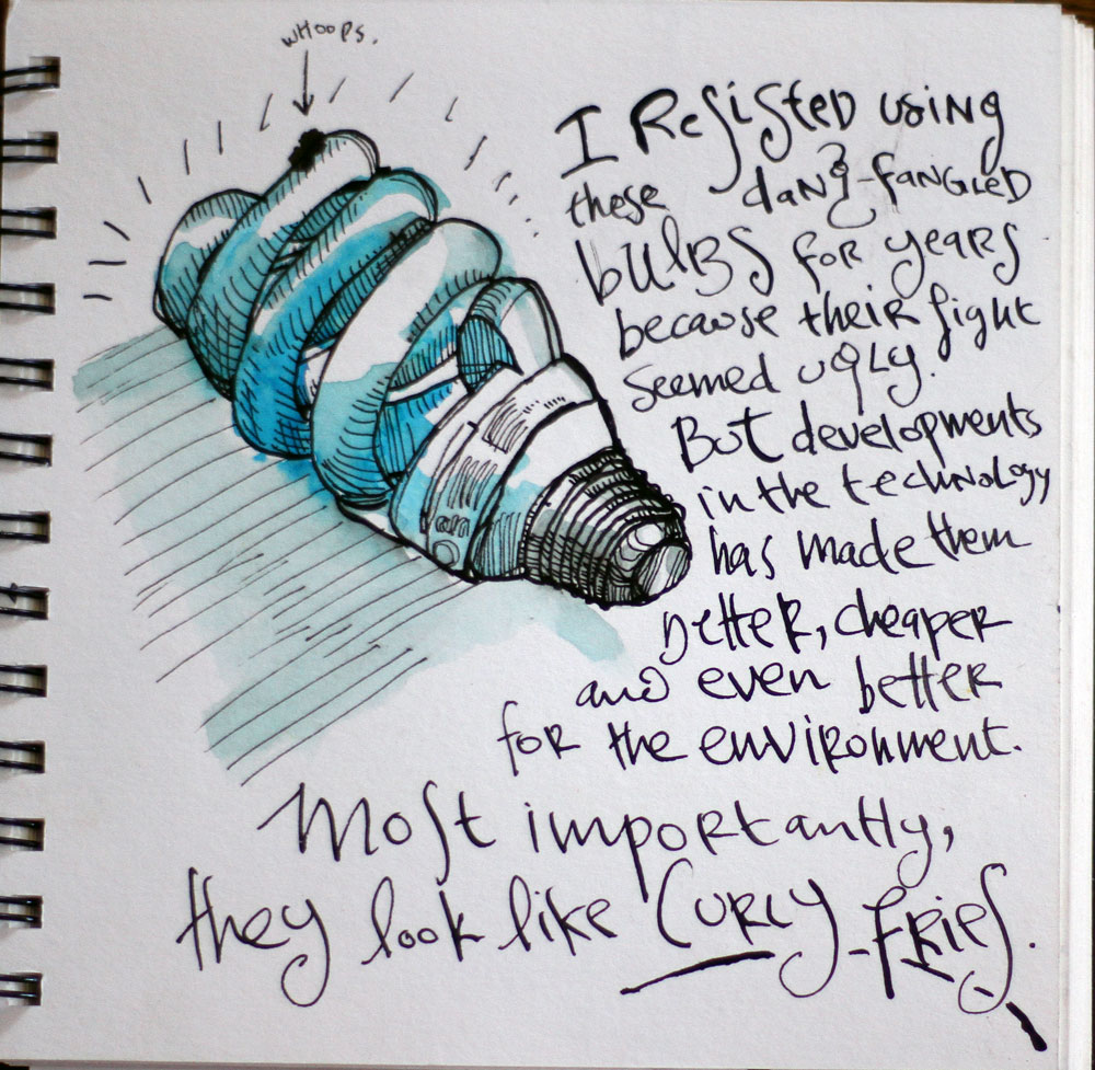 I thought of you at the weekend when I saw a stuffed fox with a bag over it\’s back, filled with other smaller stuffed creatures, the title being \”Packed Lunch\” I remembered your penchant for stuffed animals. Love the light-bulb and I felt exactly the same way as you, absolutely despised them, until resistance became futile and grudging acceptance became the new order. Now I am quite used to them and as you say the technology has improved.