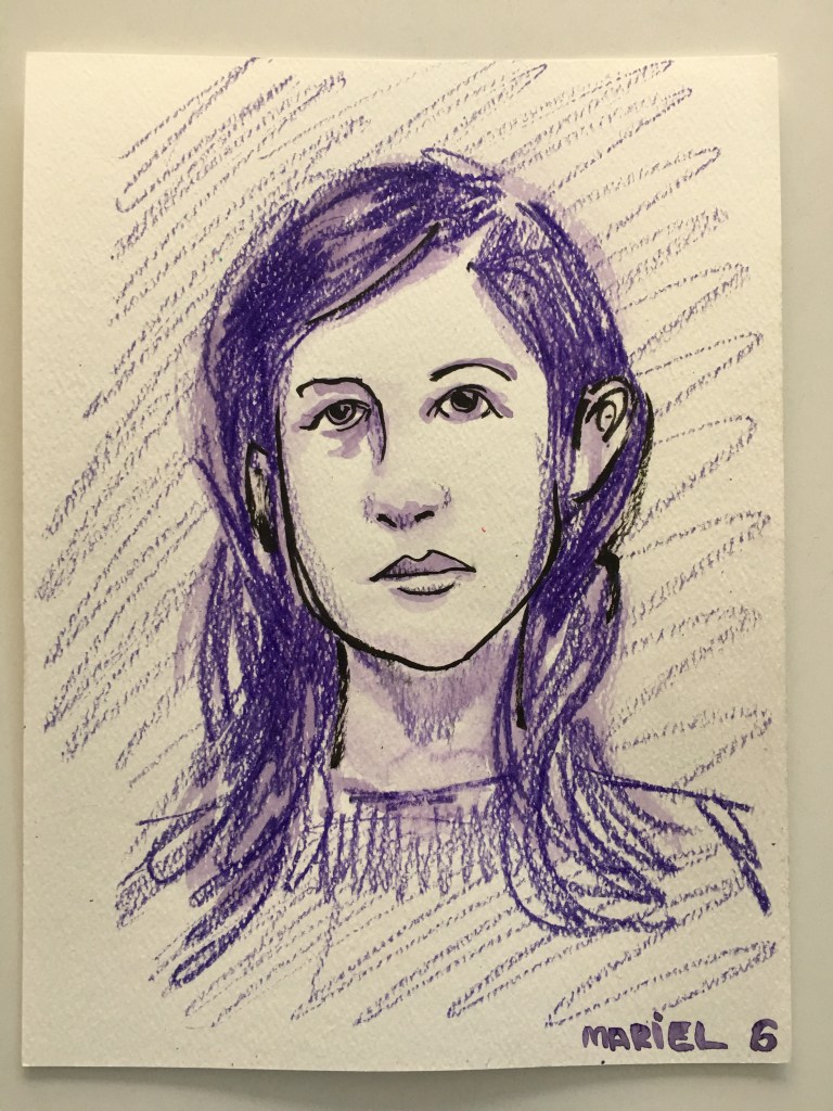 The first line seemed horribly black and heavy on top of the delicate brown and I immediately knew I was in dark trouble. But there was no backing up. The clock was ticking. We each had a single piece of Strathmore paper per portrait and I had to turn out all eleven or I’d ruin the grid. I couldn’t stop, I couldn’t course correct, I couldn’t leave. The only running would be my nose. I picked up a brown Crayon and made the best of it.