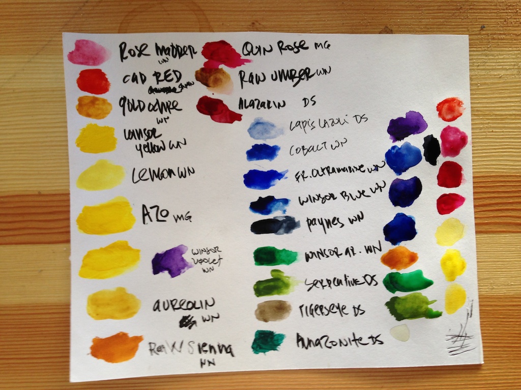 Until now, my palette situation has become less than optimal. I have my Winsor-Newton portable set which I just replenished, two teeny palettes which Roz sent me, and a big metal palette with too many paints in it.