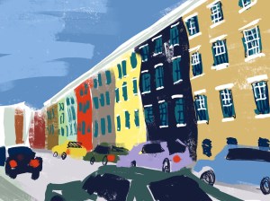 They all had a hand-drawn, anarchic and unplanned feeling, sort of evocative of 1950s Ronald Searle inspired animation — but not quite. And the thing is, they had colors that were impossible to create on paper, in any other medium.Print them out and they’d be dead. They were made of light. They were those amazing intense colors you only get by looking at a screen, utterly modern, and they made those street corners come alive. They were unlike anything I’d made before, and I was very happy.