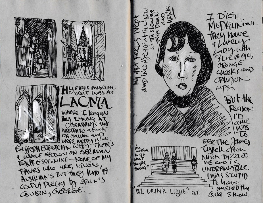 When I came to LA, I had an urgent need to furnish my home and my studio as soon as possible. Within days, I had built truckloads full of furniture and knocked out dozens of drawings and watercolors to fill the walls. I had a shelf-full of guidebooks and had visited all of the decent museums. I had contact everyone I even vaguely knew in-town and planned get-togethers.