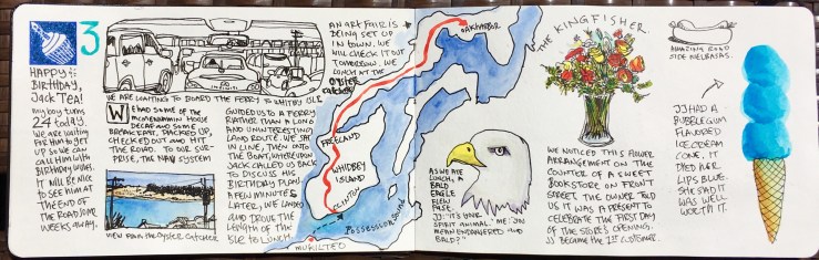 I love keeping an illustrated journal on a trip. And I’m on a big one right now, a three-week road trip down the west coast. I recorded this week’s episode while we’re on the road and I explain my process in detail, go into all the supercool new watercolor gizmos I bought to pack along, and describe what I’m seeing and how I’m turning it into pages on my journal.