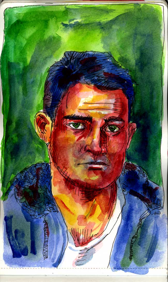 This is more like it. He has a chckeny expression in his eye which is right. My brush also feels good in my hand and I can make all sorts of marks with it in a controlled fashion. Let’s have one more go.