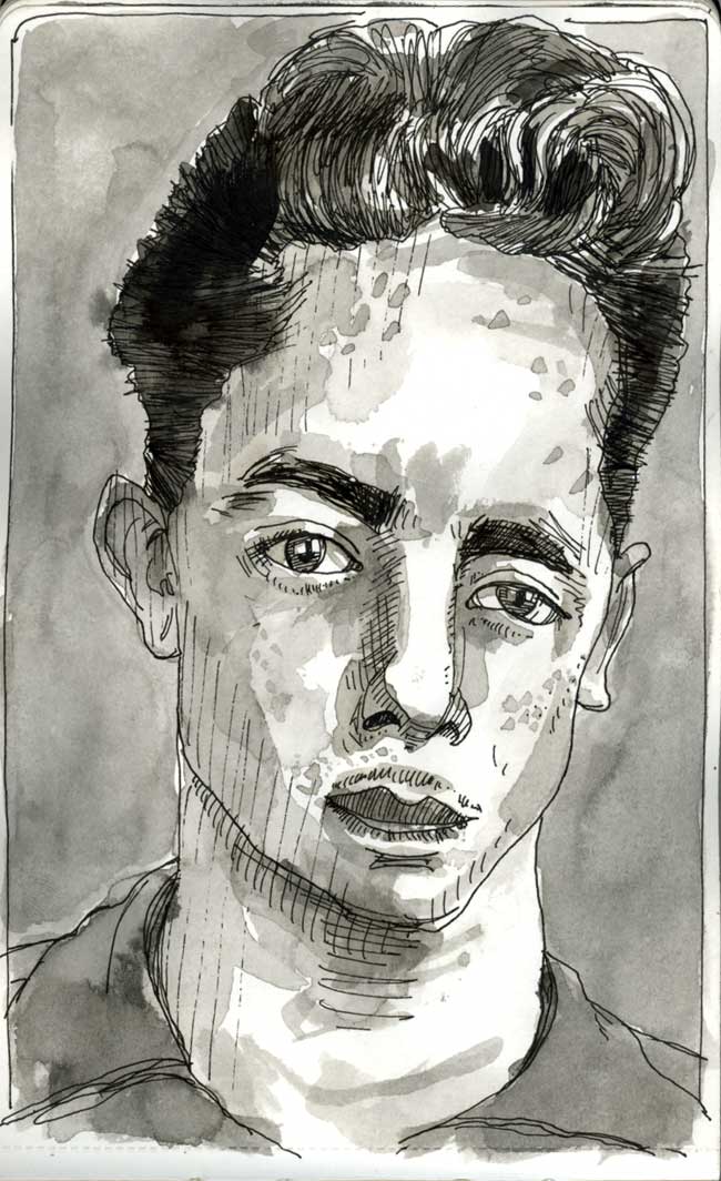 I pick up my sable brush again and dip it into my India ink. It’s a feeing experience, like drawing with a super liquidy marker and also has a fair degree of unpredictability (Or is that just a function of the fact that I don’t really know what I’m doing?) I make a specific kind of graphic image with this brush, almost comic booky, and unlikely to become my everyday way of capturing the world around me. A fun detour nonetheless.